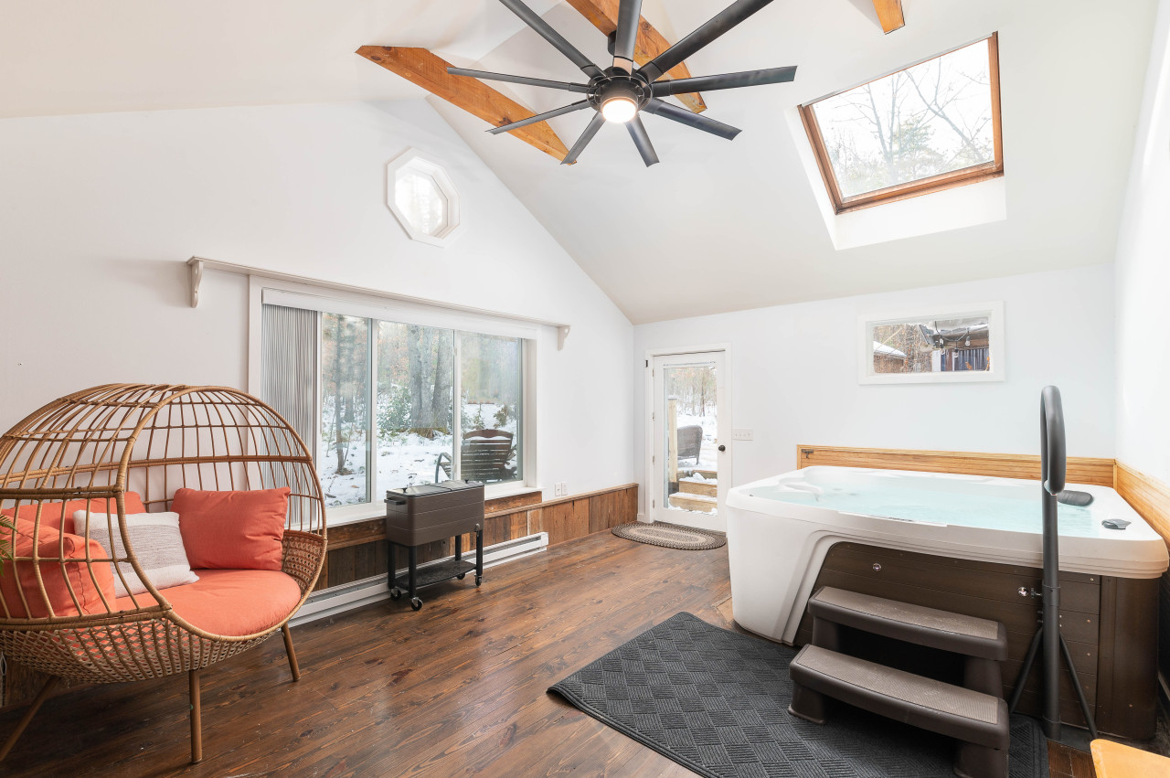 Inside, discover a haven of relaxation with an indoor hot tub and two cozy fireplaces, creating a warm and inviting atmosphere. The beautiful kitchen, adorned with high-end appliances, invites culinary adventures for the whole family.