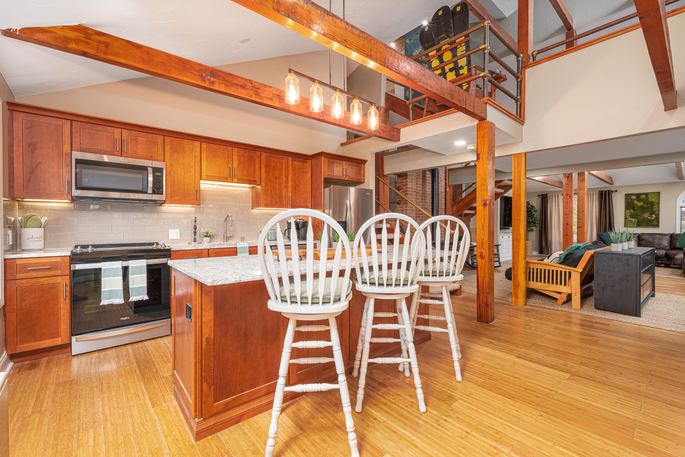 Welcome to our stunning mountain retreat, where quirky meets high-end luxury! With soaring cathedral ceilings and oodles of character, this is the perfect place to escape the hustle and bustle of everyday life. You'll sleep like royalty in our king-sized bed, and can spend your days hitting the slopes or adventuring in the great outdoors. When it's time to unwind, cozy up by the fireplace or catch your favorite flick on our massive 80 inch TV. Get ready for a vacation you'll never forget!