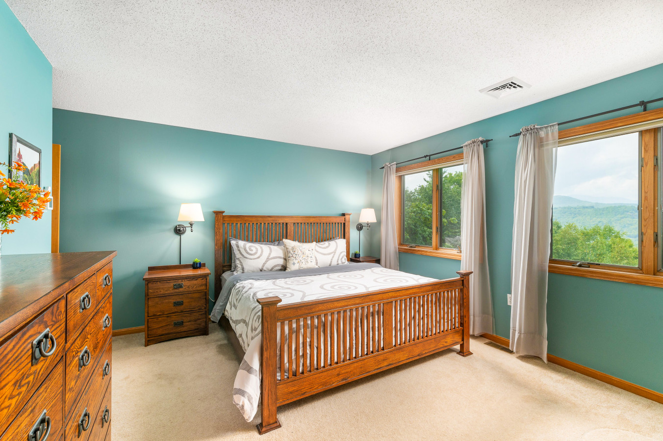 This thoughtfully designed home combines warmth, creativity, and functionality to create an inviting retreat for guests and residents alike. The interior decor seamlessly blends rustic charm with modern elegance, using a mix of natural materials like reclaimed wood, stone, and metal accents. Every room is carefully curated to enhance comfort and style while maximizing the stunning surrounding views.